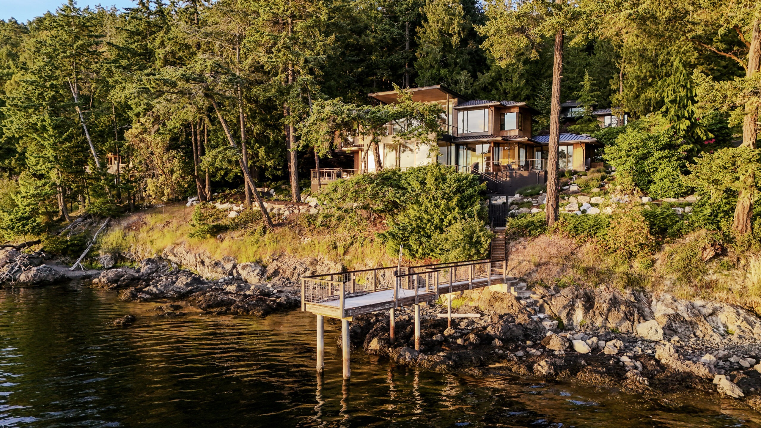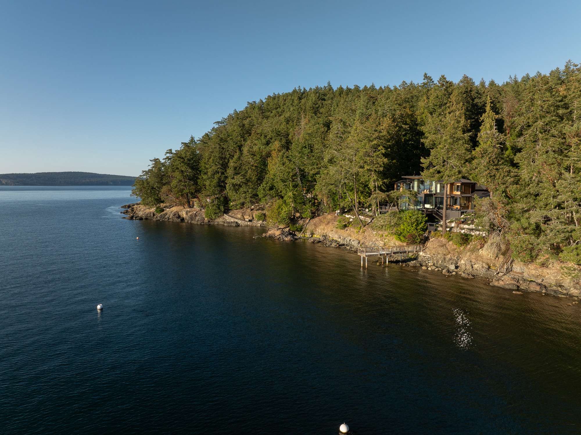 The property includes a pier with davit and mooring buoy, with a potential for a dock. There are two marinas just minutes away.