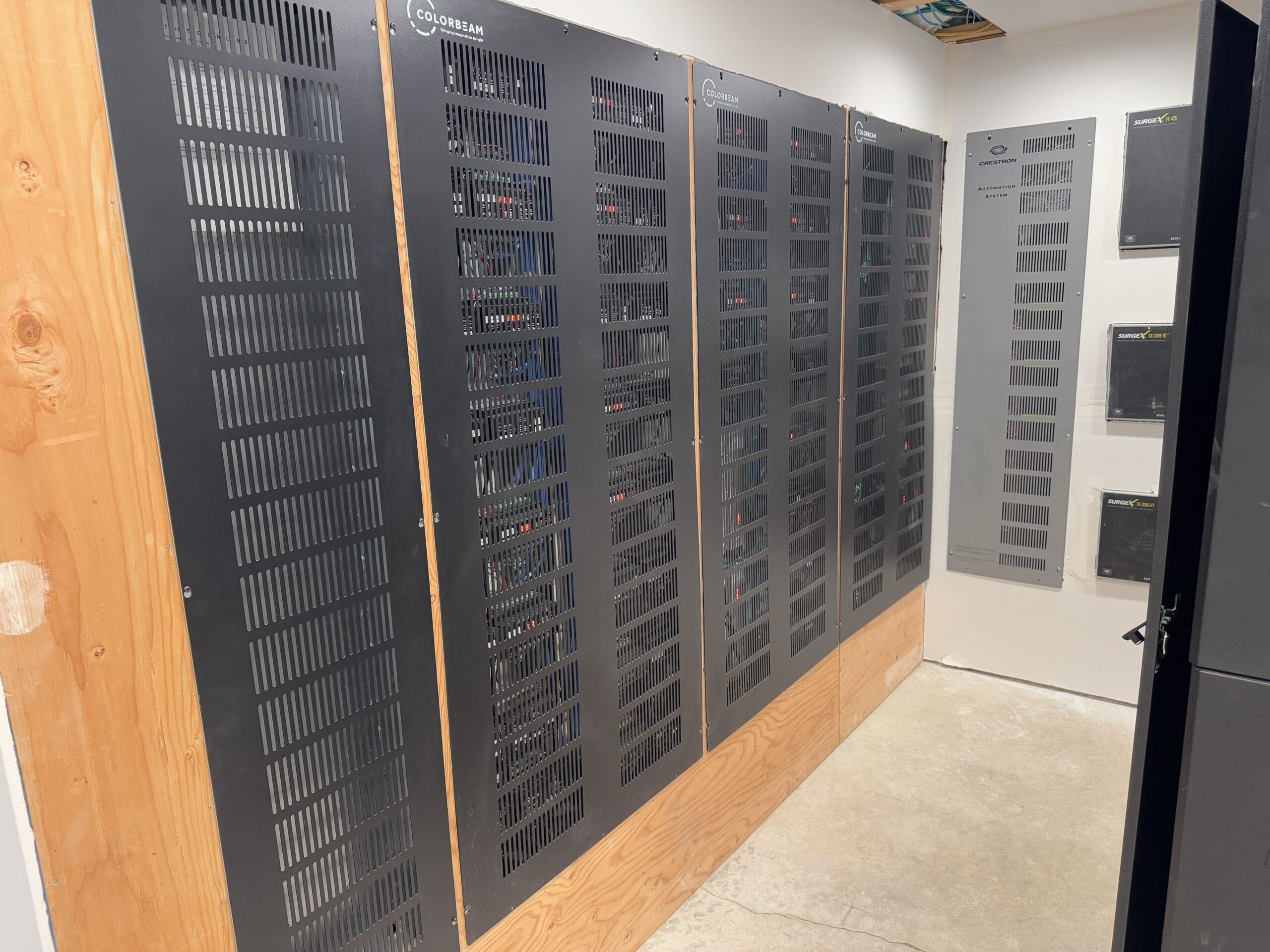 Throughout the residence, Colorbeam lighting was selected for its cutting-edge, low-voltage system—typically found only in architectural grade commercial applications. These tunable LED fixtures operate on DC power, significantly reducing energy consumption and heat output while delivering smooth dimming and precision color tuning. The result is an energy-efficient, fully integrated lighting environment that elevates both ambiance and functionality.