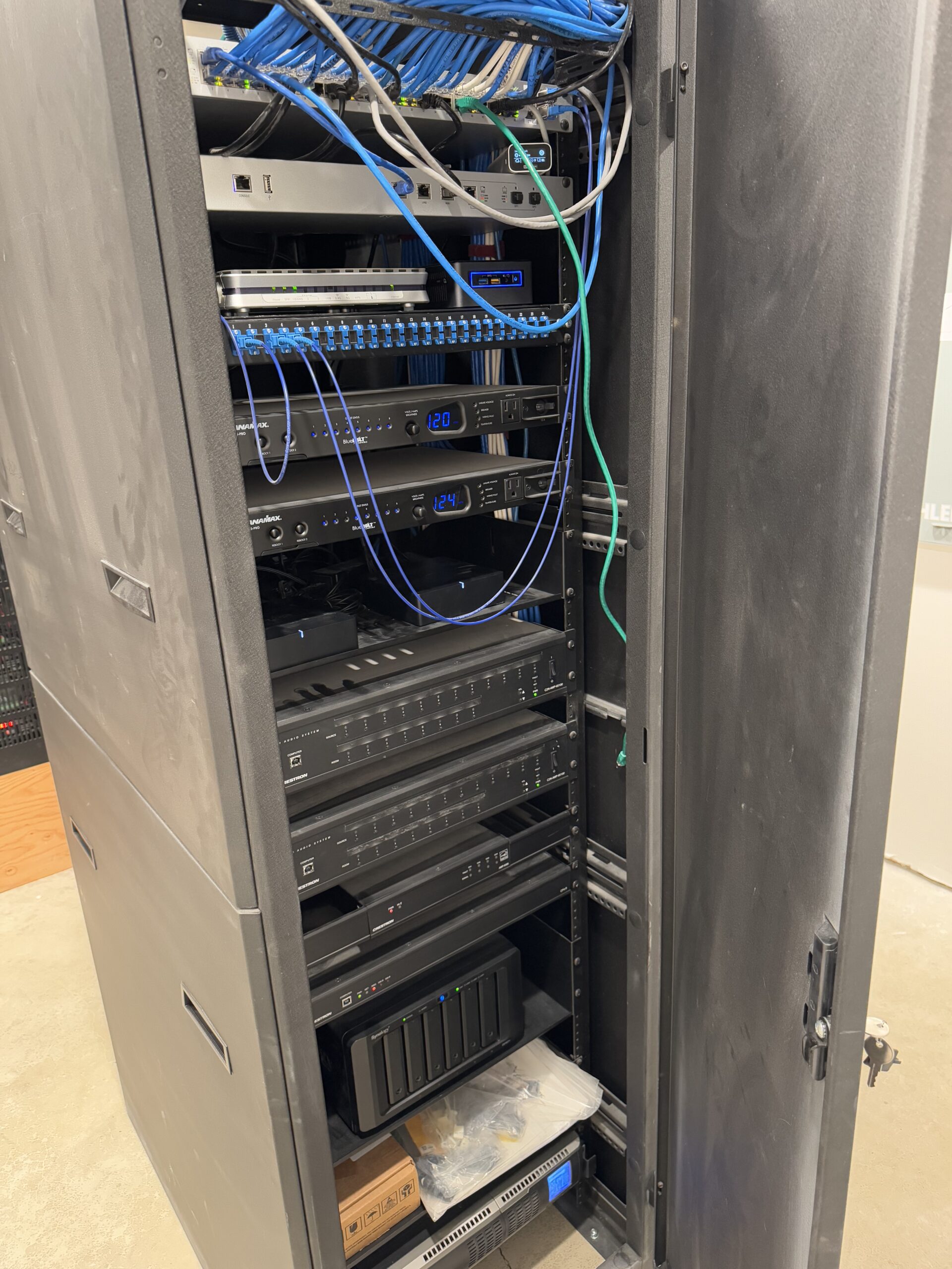 Every element of the home’s smart infrastructure was thoughtfully designed to elevate comfort, efficiency, and ease. At its heart is Crestron Home, chosen for its flawless integration across lighting, shading, climate, and music. Control is effortless—whether through wall-mounted touch screens, discreet keypads, or mobile and voice activation (including Siri). The streamlined keypads replace multiple switches with a single elegant control, eliminating long rows of mismatched switches and reducing visual clutter on your walls.